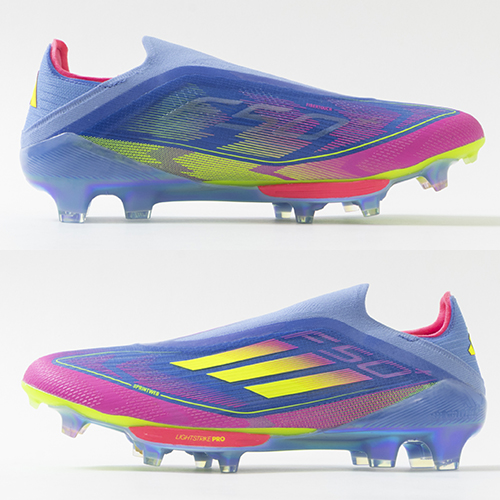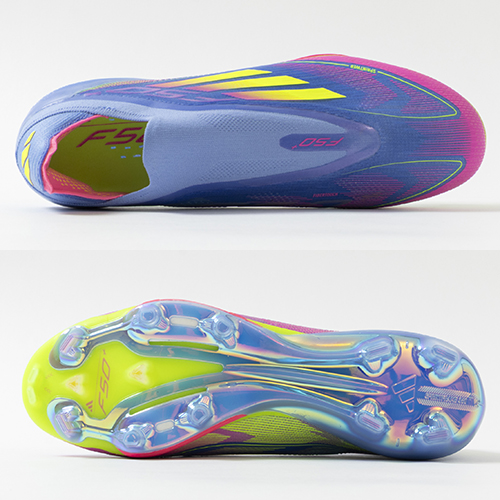 - 2025年4月3日(木)発売。春夏の新色コレクション『CELESTIAL VICTORY(セレスティアル ビクトリー) PACK』が登場。軽量素材とテクノロジーを駆使し、現代のゲームスピードに適応するように再設計されたadidas『F50』のLL(レースレス)タイプのトップモデルFG(ファームグラウンド)対応スパイク。