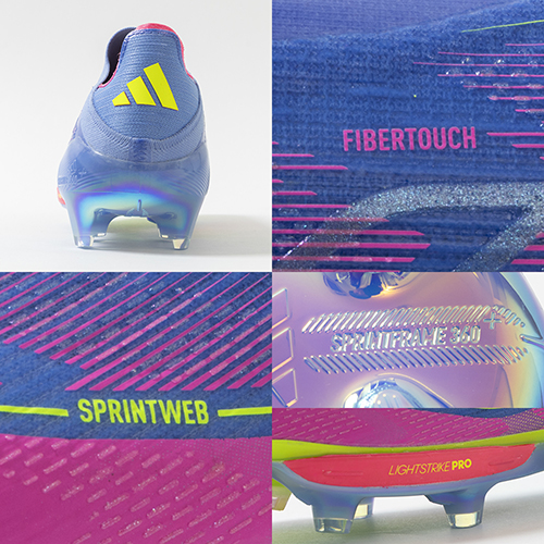 ●究極の快適さとボールの最適な感触を実現するために設計された軽量「ファイバータッチ」アッパー。設計された「スプリントウェブ」は、適応性がありながらもサポート力のあるフィット感をもたらし、高速でのボールコントロールに最適な感触を提供します。