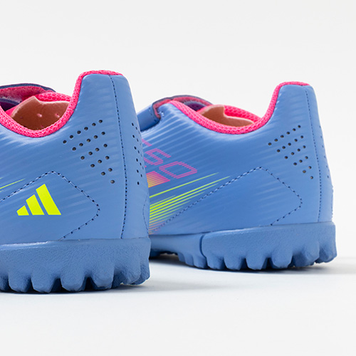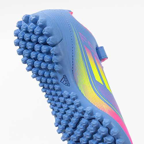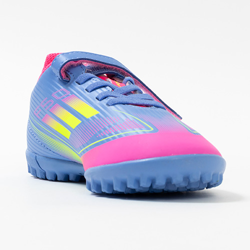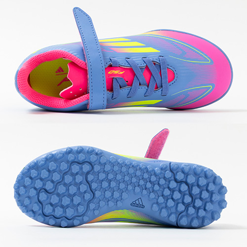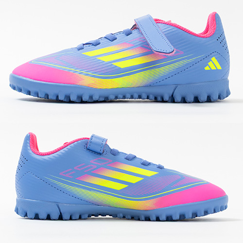 - 2025年4月3日(木)発売。春夏の新色コレクション『CELESTIAL VICTORY(セレスティアル ビクトリー) PACK』が登場。軽量素材とテクノロジーを駆使し、現代のゲームスピードに適応するように再設計されたadidas『F50』のTF(ターフコート)対応ジュニア用トレーニングシューズのHook&Loop(ベルクロ)タイプ。
