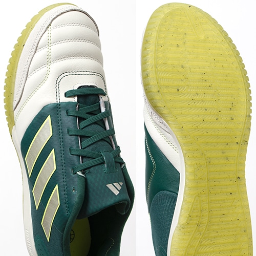 - リサイクル素材を一部使用した、クイックな動きを後押しする「TOP SALA COMPETITION(トップ サラ コンペティション)」。インドアコートのゲームをレベルアップしよう。足をぴったり包み、フットサルの試合中スピーディーに動くための爆発的なパワーを引き出してくれるインドアシューズ。