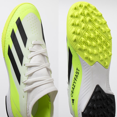 - 2023年7月11日(火)発売。2023年秋のコレクション『CRAZYRUSH(クレイジーラッシュ) PACK』から、スピードに特化したadidas『X(エックス)』シリーズに急激な方向転換や俊敏なステップワークに必要な“脅威のアジリティ”をもたらすNEWモデル「X CRAZYFAST(クレイジーファスト)」が登場。TF(ターフコート)対応ジュニア用トレーニングシューズ。