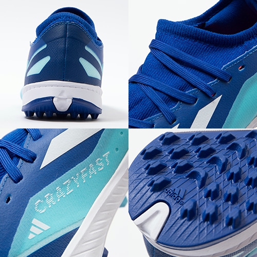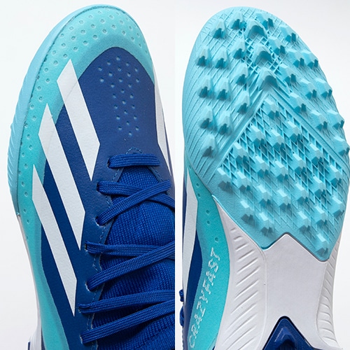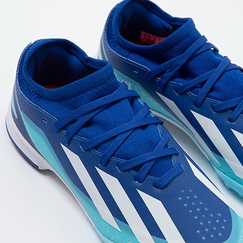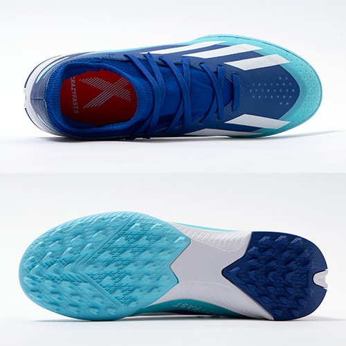 急激な方向転換や俊敏なステップワークに必要な“脅威のアジリティ”をもたらす、スピードに特化した「X CRAZYFAST(クレイジーファスト)」のTF(ターフコート)対応ジュニア用トレーニングシューズ。