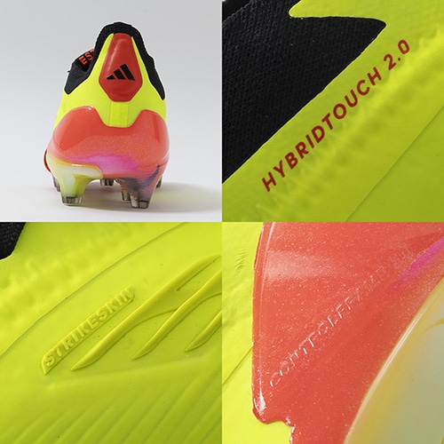 ●前足部の快適性と安定性のために最新の合成スエードとフォイル素材を使用した HYBRIDTOUCH(ハイブリッドタッチ)2.0アッパー。横方向のドリブルゾーンの正確なグリップテクスチャーにより、ボールコントロール性が向上。
