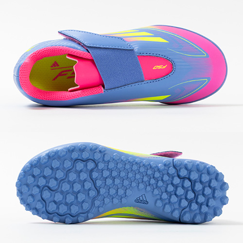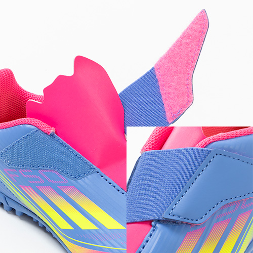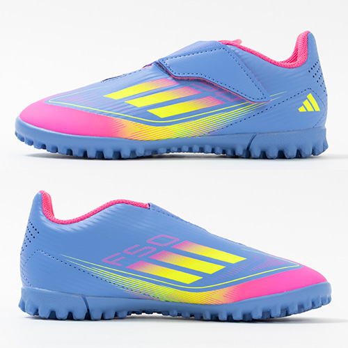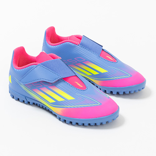 - 2025年4月3日(木)発売。春夏の新色コレクション『CELESTIAL VICTORY(セレスティアル ビクトリー) PACK』が登場。軽量素材とテクノロジーを駆使し、現代のゲームスピードに適応するように再設計されたadidas『F50』のTF(ターフコート)対応ジュニア用トレーニングシューズのワンベルトタイプ。