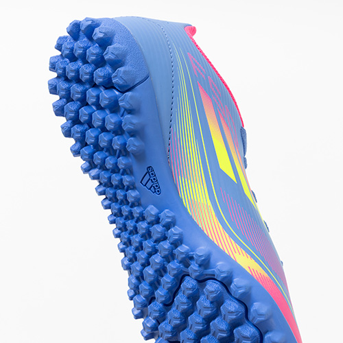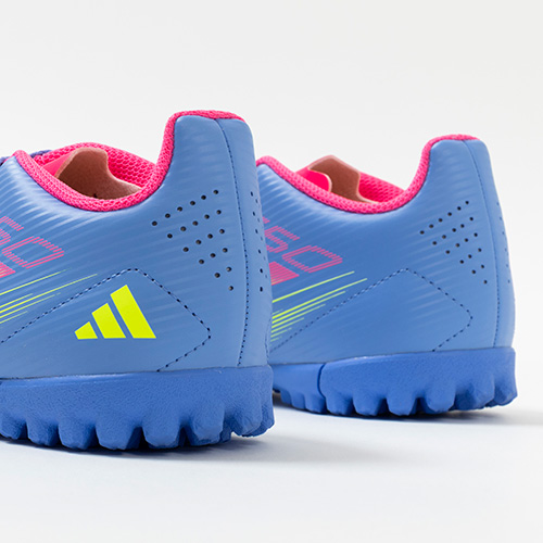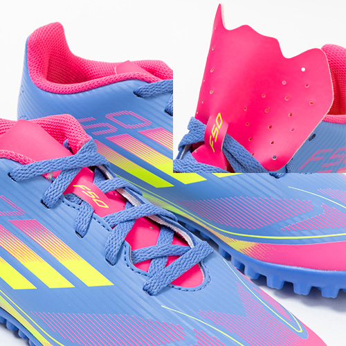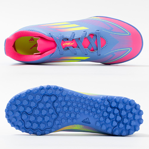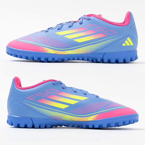 - 春夏の新色コレクション『CELESTIAL VICTORY(セレスティアル ビクトリー) PACK』が登場。軽量素材とテクノロジーを駆使し、現代のゲームスピードに適応するように再設計されたadidas『F50』のTF(ターフコート)対応ジュニア用トレーニングシューズ。