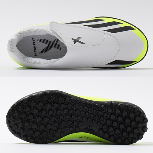 - 2023年7月11日(火)発売。2023年秋のコレクション『CRAZYRUSH(クレイジーラッシュ) PACK』から、スピードに特化したadidas『X(エックス)』シリーズに急激な方向転換や俊敏なステップワークに必要な“脅威のアジリティ”をもたらすNEWモデル「X CRAZYFAST(クレイジーファスト)」が登場。TF(ターフコート)対応ジュニア用エントリーモデルトレーニングシューズのワンベルトタイプ。