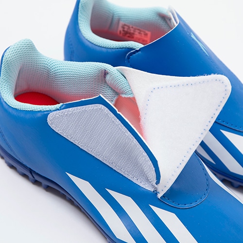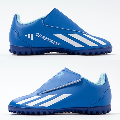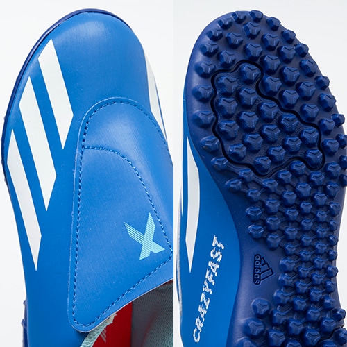 急激な方向転換や俊敏なステップワークに必要な“脅威のアジリティ”をもたらす、スピードに特化した「X CRAZYFAST(クレイジーファスト)」のTF(ターフコート)対応ジュニア用エントリーモデルトレーニングシューズのワンベルトタイプ。
