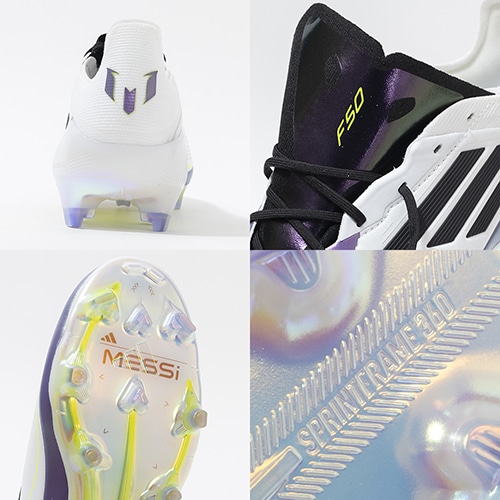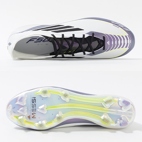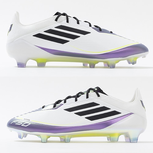 - 2024年10月11日(金)発売。メッシのプレースタイルに合わせて進化を遂げたコレクション『MESSI TRIUNFO ESTELAR(メッシ トリウンフォ エステラー) PACK』が登場。軽量素材とテクノロジーを駆使し、現代のゲームスピードに適応するように再設計されたadidas『F50』のELITE(エリート)モデルFG(ファームグラウンド)対応スパイク。