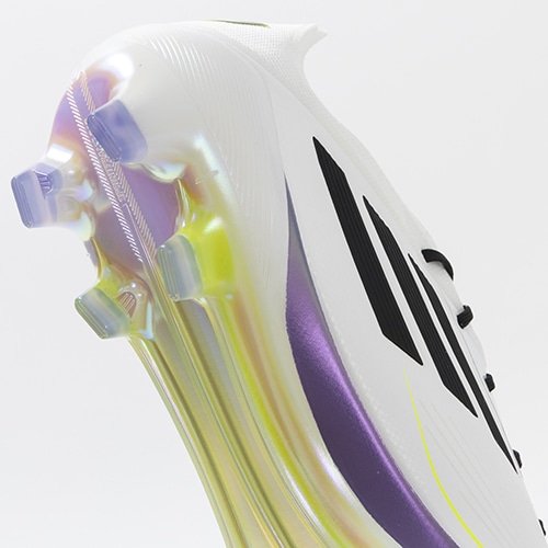●爆発的な推進力と効率的に素早くパワー伝達するために設計された「スプリントフレーム360」アウトソール。追加の前足スタッドとジェネレーティブスタッドデザインは、乾いた天然芝でのトラクションを最適化。さらに一体型のエクスターナルヒールカウンターを採用し、あらゆる方向への加速とスピードに貢献。