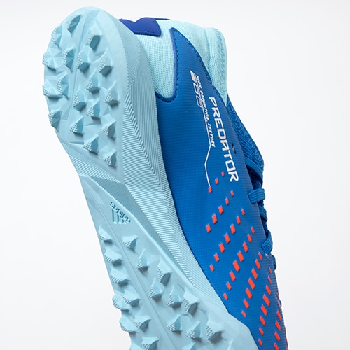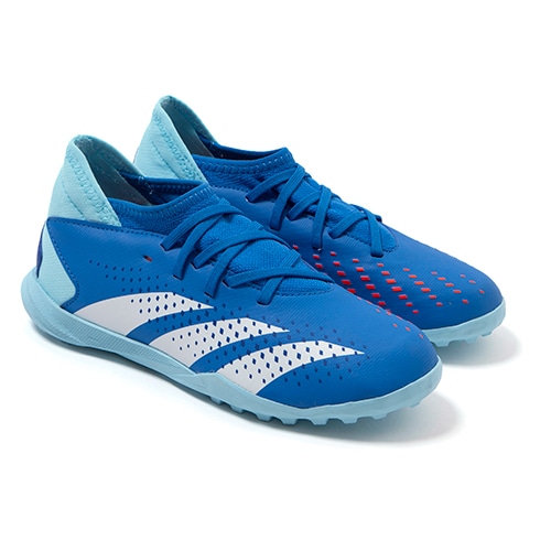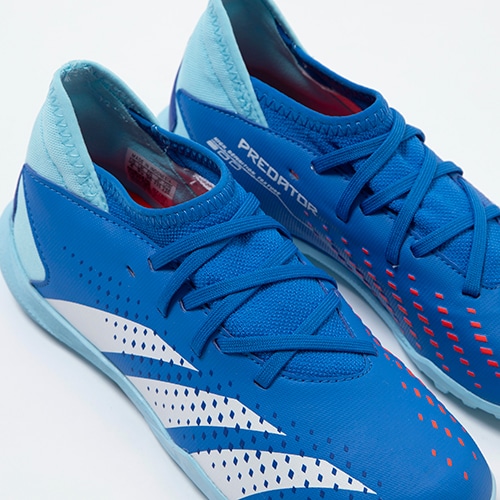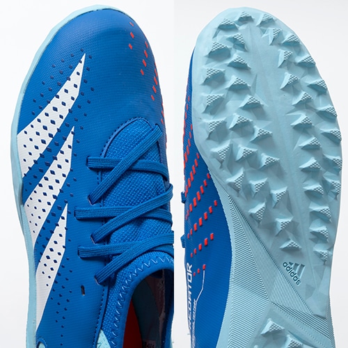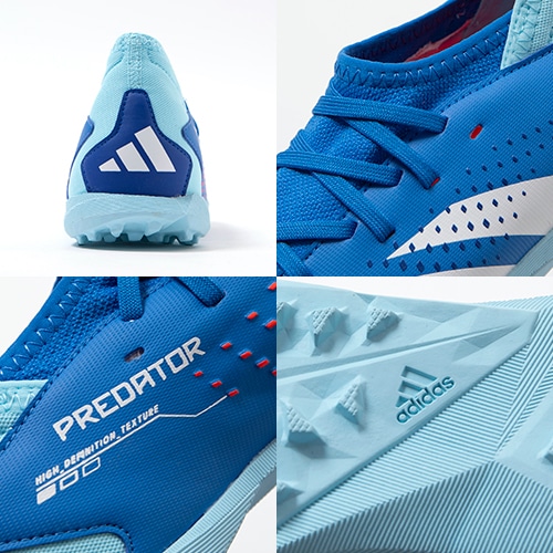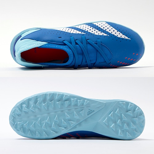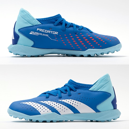 キックの精度で勝負するプレーヤーに向けたadidas「PREDATOR ACCURACY(アキュラシー)」のTF(ターフコート)対応ジュニア用トレーニングシューズ。