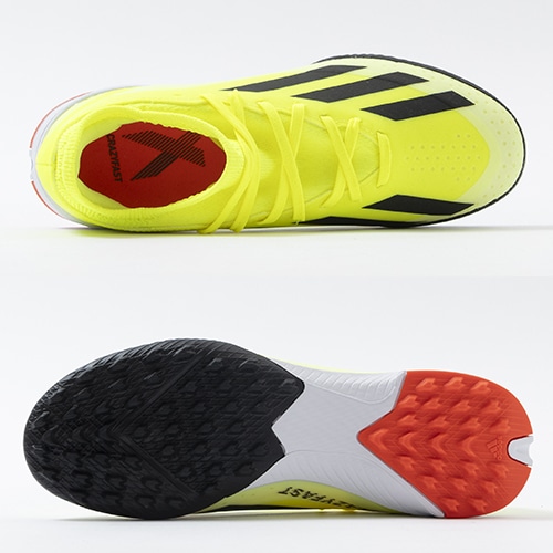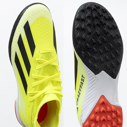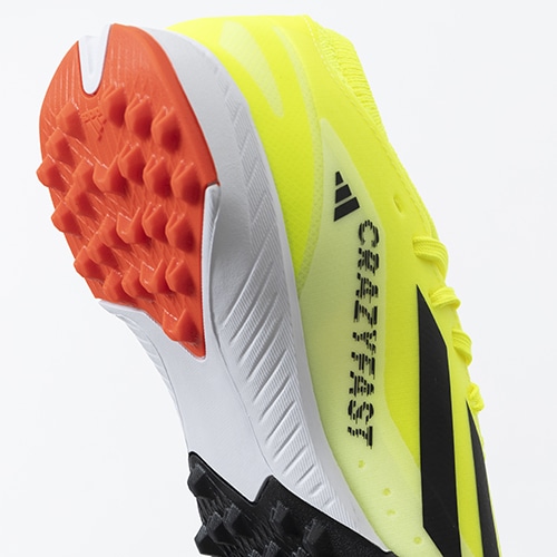 - 2024年1月16日(火)発売。2024年春夏の新色コレクション『SOLAR ENERGY(ソーラー エナジー) PACK』が登場。急激な方向転換や俊敏なステップワークに必要な“脅威のアジリティ”をもたらす、スピードに特化した「X CRAZYFAST(クレイジーファスト)」のTF(ターフコート)対応ジュニア用トレーニングシューズ。