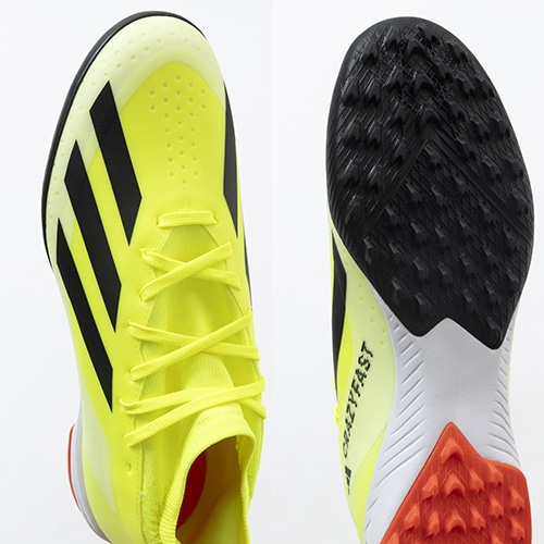 - 2024年1月16日(火)発売。2024年春夏の新色コレクション『SOLAR ENERGY(ソーラー エナジー) PACK』が登場。急激な方向転換や俊敏なステップワークに必要な“脅威のアジリティ”をもたらす、スピードに特化した「X CRAZYFAST(クレイジーファスト)」のTF(ターフコート)対応トレーニングシューズ。