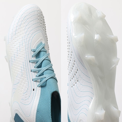 ●ソフトなつま先の素材が、より高いフィット感に貢献し、質の高いボールタッチを実現したハイブリッドタッチアッパー。キッキングゾーンにラバーエレメントを採用し、ソフトなアッパーフィーリングを維持しながら、ボールへのグリップ力を高める「ハイデフィニショングリップ」。