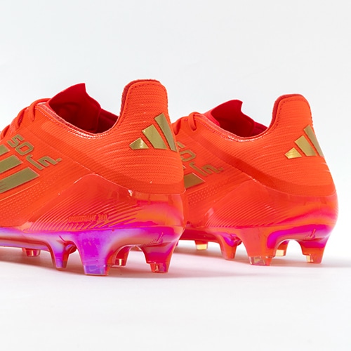 ●爆発的な推進力と効率的に素早くパワー伝達するために設計された「スプリントフレーム360」アウトソール。追加の前足スタッドとジェネレーティブスタッドデザインは、乾いた天然芝でのトラクションを最適化。さらに一体型のエクスターナルヒールカウンターを採用し、あらゆる方向への加速とスピードに貢献。