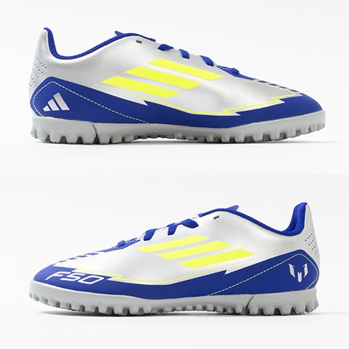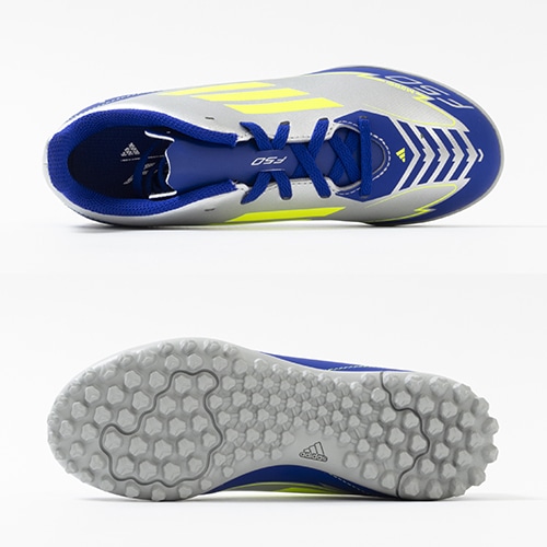 - 2025年2月12日(水)発売。全ての人を魅了するメッシのスキルを讃える限定コレクションが登場。軽量素材とテクノロジーを駆使し、現代のゲームスピードに適応するように再設計されたadidas『F50』のTF(ターフコート)対応ジュニア用トレーニングシューズ。