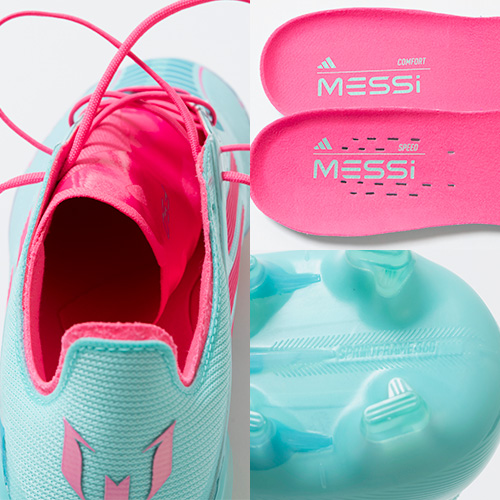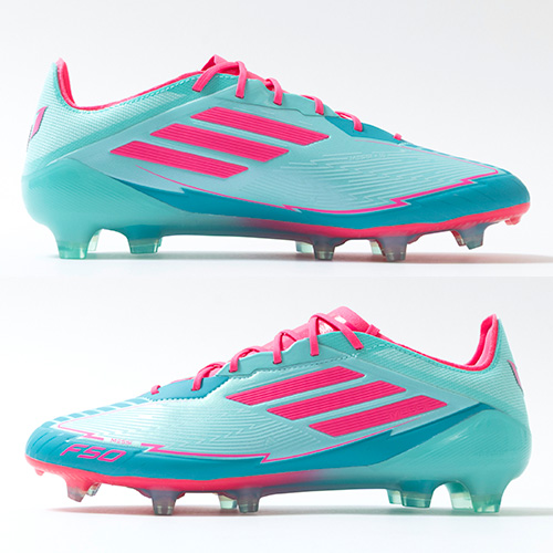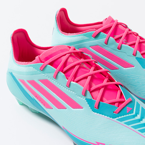 全ての人を魅了するメッシのスキルを讃える限定コレクションが登場。軽量素材とテクノロジーを駆使し、現代のゲームスピードに適応するように再設計されたadidas『F50』のELITE(エリート)モデルFG(ファームグラウンド)対応スパイク。