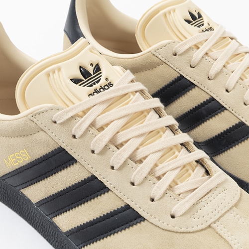 メッシのプレースタイルに合わせて進化を遂げた新作コレクション『MESSI TRIUNFO DORADO(メッシ トラウンフォ ドラド) PACK』が登場。クラシックなスエードアッパーとラバーソールが特徴の「GAZELLE(ガゼル)」の「MESSI」モデル。