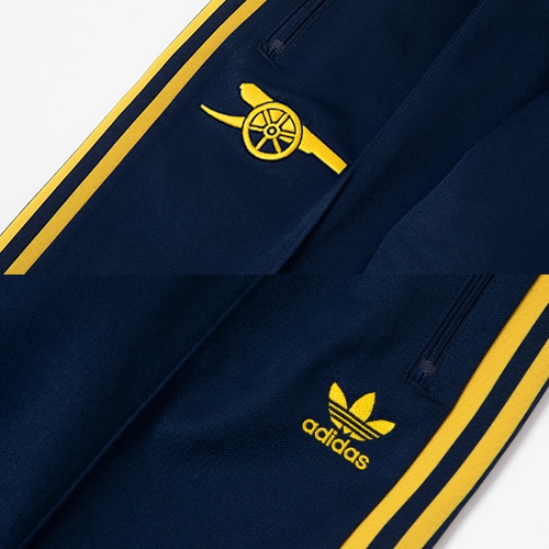 - adidas ORIGINALS×アーセナルFCのコラボレーションアイテム、ベッケンバウアートラックパンツ。美しいゲームのアイコンの名前を冠したこのアーセナル ベッケンバウアー トラックパンツは、シンプルなデザインとトレフォイルの刺しゅうが60年代らしい雰囲気を演出。コットン混紡素材を使用したソフトなスリムフィットの作りで、ピッチを離れても快適な着心地が続く。