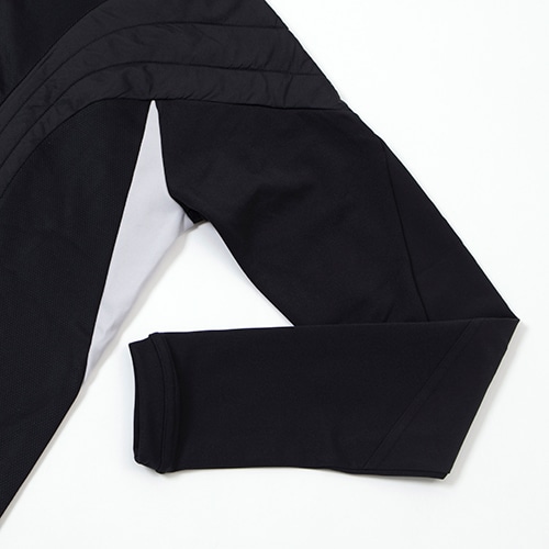 - サッカーのヘリテージデザインにルーツを持つ「TIRO(ティロ) 23」シリーズ。アディダス各国代表チームのトレーニングウェアに採用されている2023年モデル。リサイクル素材で作られた、収納可能なバラクラバ付きトップ。
