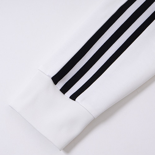 黒と白の配色を採用した、レトロさとスポーティーさが絶妙に組み合わさったデザイン。高い襟、リブ仕上げのディテール、トレフォイルロゴが、サッカーの黄金期を彷彿とさせる。