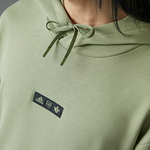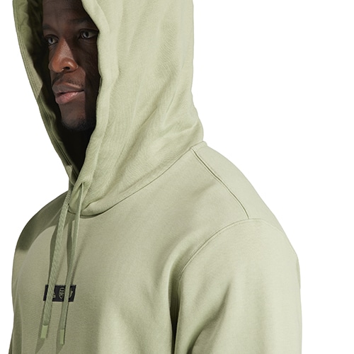 快適な着心地をもたらすソフトなフレンチテリー素材を使用。携帯電話や鍵などを入れるのに便利なカンガルーポケット、ドローコードでフィット感を調節できる裏地付きフード付き。