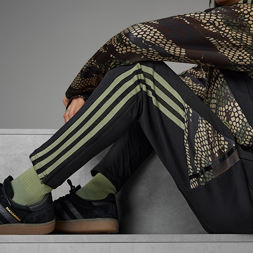 快適なスリムフィットのカッティングを採用し、クロッチ部分にはガセットを設けて動きやすさを高めている。アンクルジップと、ドローコード付きの伸縮性ウエストで好みのフィット感に調節可能。貴重品をしっかり収納できるポケットも装備。adidas AEROREADYという汗をコントロールする機能により、快適な履き心地が持続。