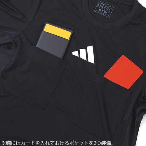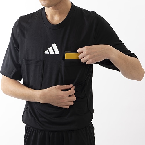 脇の下の特殊な構造により、タックインしたシャツがパンツからはみ出ることを心配せずにしっかりと判断が下せる。汗を逃がすAEROREADYのおかげで気を散らすことなく、レフェリーに集中できる。また胸にはカードを入れておけるポケットを2つ装備。
