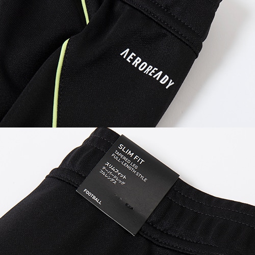 素早い動作を邪魔しない、無駄を省いたスリムなシルエットが特徴。肌から汗を瞬時に排出するAEROREADY機能を採用した作りだから、ハードなトレーニングをこなしても、身体はドライなまま。キツい練習が終わったら、ウェアは早く脱ぎ捨てたいもの。このパンツにはアンクルジップが付いているから、スパイクやトレーニングシューズを履いたままでも脱ぎやすい。サイドシームにジップポケット付き。スリムフィット。