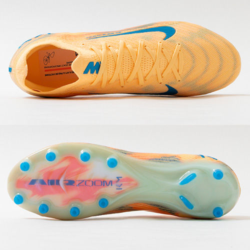 - キリアン・エムバペ(Kylian Mbappe)選手シグネイチャーモデルに秋冬の新色コレクションが登場。NikeのAirテクノロジーが最大限に機能を発揮する『AIR ZOOM MERCURIAL(エア ズーム マーキュリアル)』の軽量でサポート性に優れ、爆発的なプレーをサポートするローカット形状「VAPOR(ヴェイパー) 16」のELITE(エリート)/ステートメントモデルAG(アーティフィシャルグラス)対応スパイク。