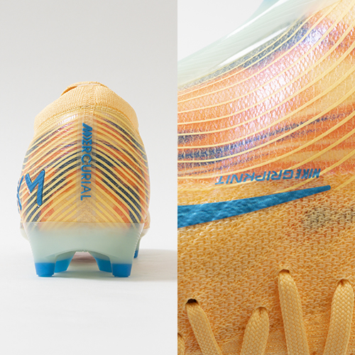 ●全面にFlyknitアッパーを使用してスピードを追求。 驚きの軽さで丈夫なAtomknitをサイドに使用した、軽量でサポート性に優れたデザイン。 Gripknit、Atomknit、Flyknitを組み合わせて、マーキュリアル史上最も薄いアッパーを実現。ボールとの距離を縮めるとともに、すぐに足に馴染みます。