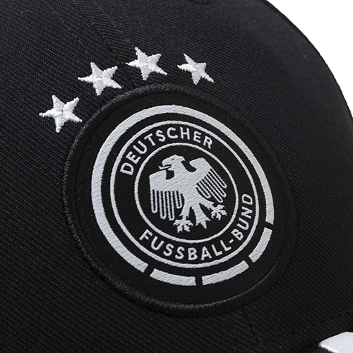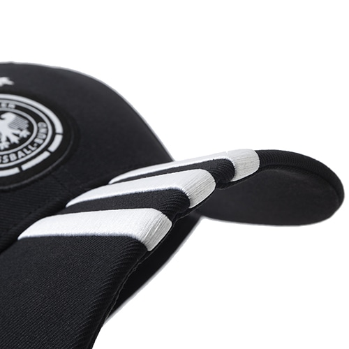 ドイツ代表の2024年モデルのキャップ。リサイクル素材を一部使用した、ドイツ代表チームカラーのツイルキャップ。