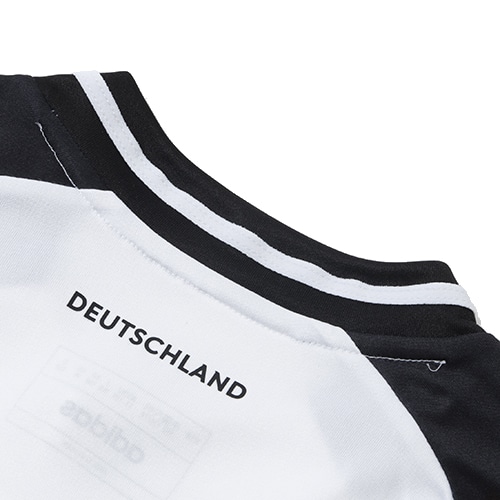 ドイツサッカーのスピリットをカタチにして、4度の世界チャンピオンのシンボルをすべて詰め込み、肩に鷲の羽根をイメージした装飾を、フロント全体にはDFBロゴからとったエンボス加工のディテールをそれぞれあしらったデザインし、ソフトな生地に吸湿性を発揮するAEROREADYテクノロジーを使用。