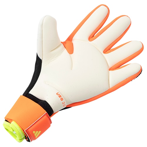 ●URG 2.0パームには、グリップ力を高めるサムラップ、そしてダイブ後すぐに起き上がったりする際に受けやすいダメージをガードする、耐摩擦ゾーンを設けている。