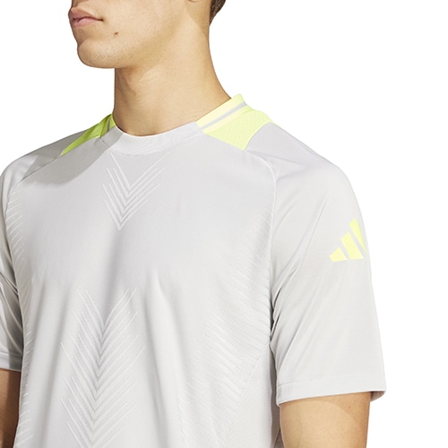 トップレベルのプレーヤーがトレーニングでもいい動きができるようにデザインされた、プロシリーズの一つ。身体に清涼感を与えるHEAT. RDYテクノロジーの力を借りて、スキルを磨くのに集中しよう。袖に3バーロゴを熱転写し、キミの努力に相応しい、スポーティーなテイストに仕上げている。