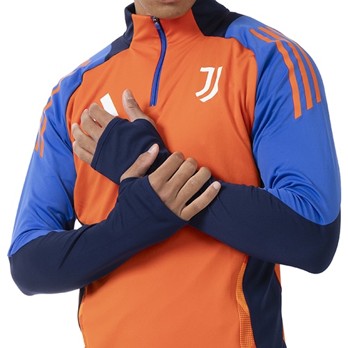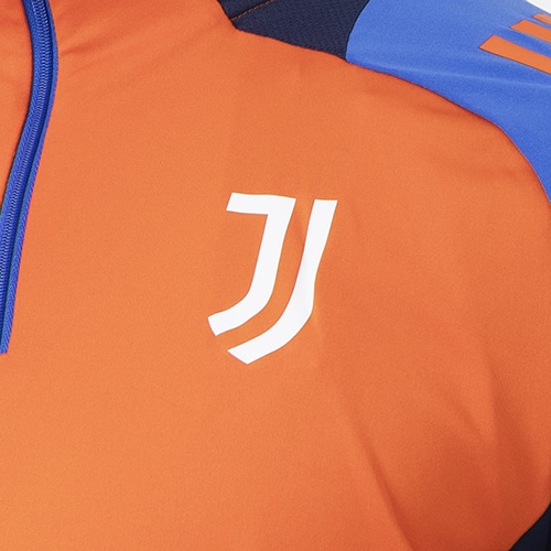 異次元のサッカーをするユベントスのチームのために作られた、現代の宇宙服にインスパイアされたカラーの鮮やかさが際立つトレーニングトップ。