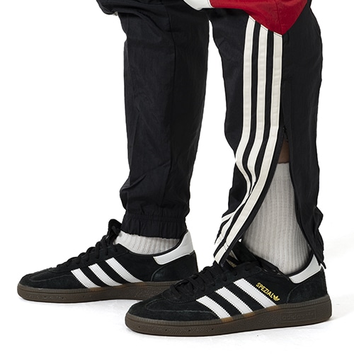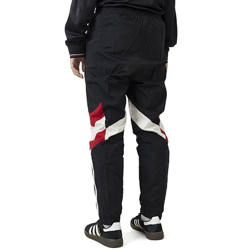 アーカイブデザインに新たな解釈を加えた一着。大胆なスリーストライプスと、片脚にあしらったトレフォイルロゴがサッカーの時代を象徴するルックスを完成させている。もう片方の脚には赤い悪魔のエンブレムを配置し、オールド・トラッフォードスタイルのトラックパンツに仕上げている。試合当日の群衆の中でも、ひときわ目を引くデザイン。