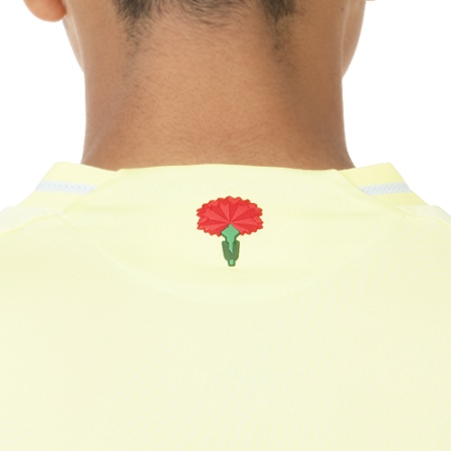 太陽の下で開花する、スペインの夏のシンボルからインスピレーションを得た、カーネーションのサインオフとチームのエンブレムが特徴的なデザインに。ソフトな生地に吸湿性を発揮するAEROREADYテクノロジーを使用。