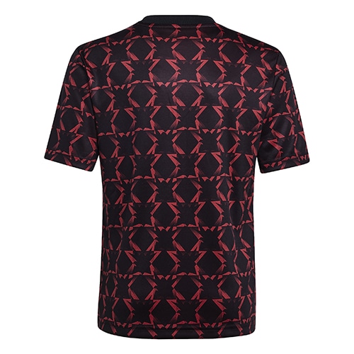 選手たちは、このマンチェスター・ユナイテッド プレマッチジャージーを着て、勝利に向けて準備をする。これは、アウェイユニフォームの"M"のモノグラムパターンを全体にあしらった、試合前の練習やウォームアップのときに着用するウェアのジュニア向けバージョン。ソフトな生地と汗を吸収するAEROREADYテクノロジーを組み合わせている。