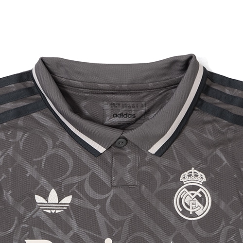 時代を超越したクラシックなスタイルとチャコール・モーヴのカラーをベースに、エレガントでモダンなテイストを融合させたデザインです。高級感のある「RMCF」モノグラム柄の総柄、平編みのポロ襟が特徴で、アイコニックなトレフォイルロゴが相まって、トラディッショナルとモダンなスタイルが調和した唯一無二のユニフォームに仕上げています。