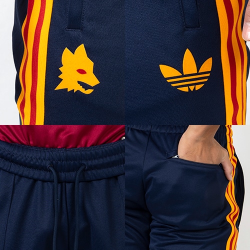 タイムレスなスリーストライプスで、ASローマの歴史をセレブレート。92-93シーズンに選手たちが着用していたギアからインスピレーションを得て、大きなトレフォイルロゴといったクラシックなアディダススタイルを採り入れた、斬新なデザインのトラックパンツ。スタイルにこだわるジャッロロッシファンにとっての、マストアイテム。