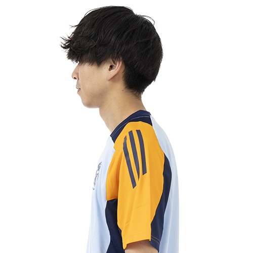スキルをさらに引き上げるべく、集中してトレーニングに励む選手を応援する、レアル・マドリード ジャージー。汗をコントロールするAEROREADYのパワーで、ゲームに向けてスキルを磨く間も爽やかな着心地が続く。胸に熱転写したエンブレムが、"ロス・ブランコス"のサッカーを象徴する情熱と精密さを彷彿とさせる。