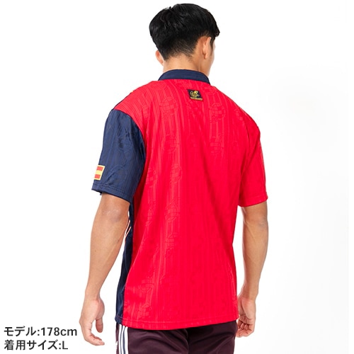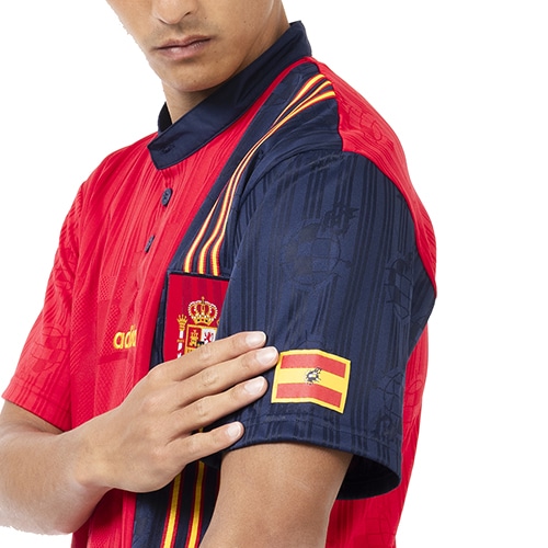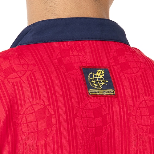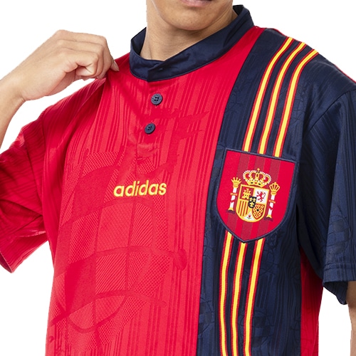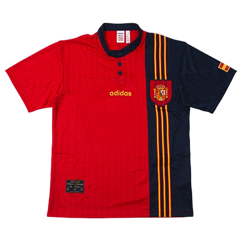 - スペイン代表チームのアパレルコレクション、リサイクル素材で作られた、懐かしのスペイン代表サッカージャージー。記憶に刻まれた栄光の時代が蘇る。90年代のスペインサッカーを象徴するデザインを纏って、サポーター魂を見せつけよう。1996年のラ・ロハの伝説的なホームジャージーが、サッカーファンはもちろん、レトロなスタイルを求める人のために戻ってきた。