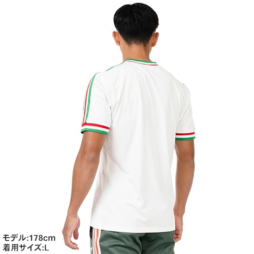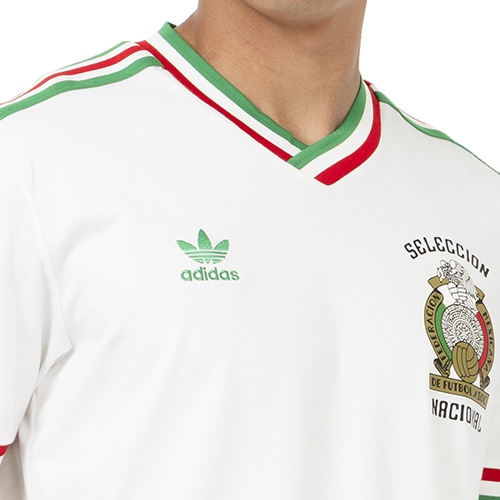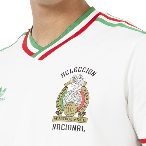- 2023年12月12日(火)発売。メキシコ代表チームのアパレルコレクション、リサイクル素材で作られた、レトロなメキシコ代表ジャージー。細かいディテールにまでこだわって、80年代のオーセンティックなルックスを再現した半袖ジャージー。当時主流だったルーズフィットのシャツの胸にスクリーンプリントの代表エンブレムと、クラシックなアディダス トレフォイルをあしらい、ひと目でそれとわかるレトロなルックスに仕上げている。ピッチサイドや街に出るときなど、どこに行っても一目置かれる、スタイリッシュなデザイン。