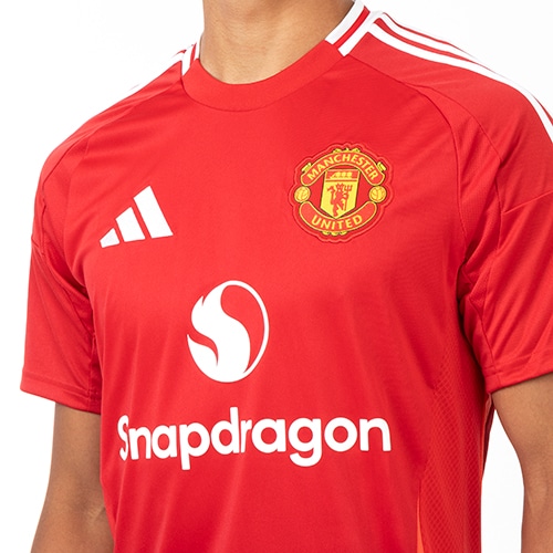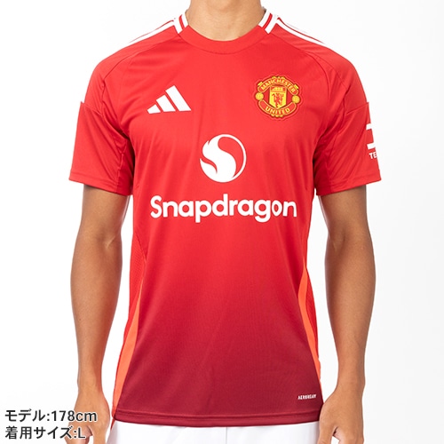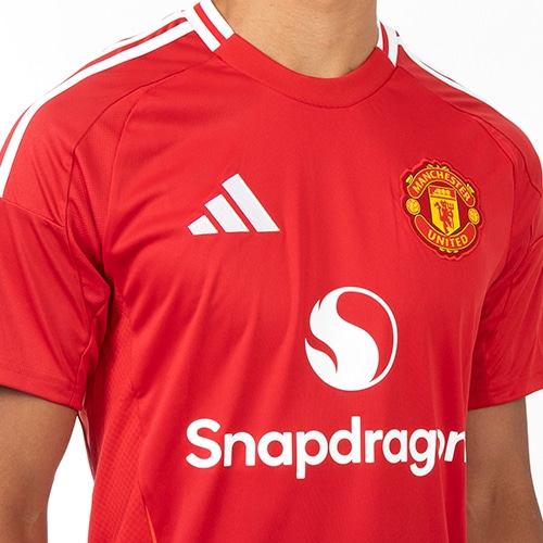 プレミアリーグ(イングランド)・マンチェスター・ユナイテッドの2024-2025シーズン HOMEモデル ユニフォーム(サポーター着用モデル)。*ジャパンサイズ。