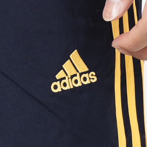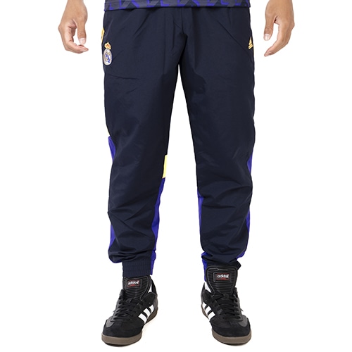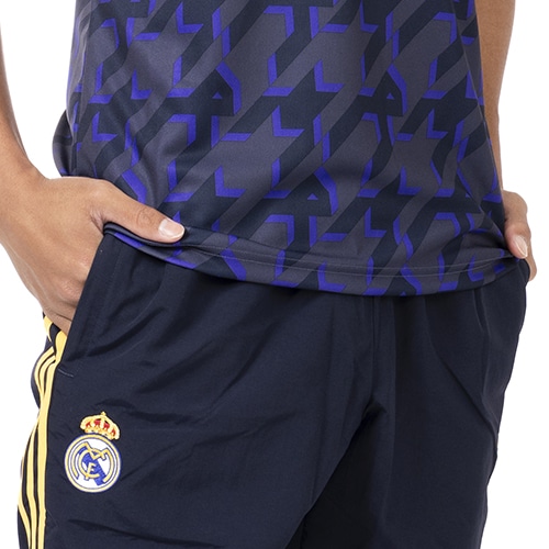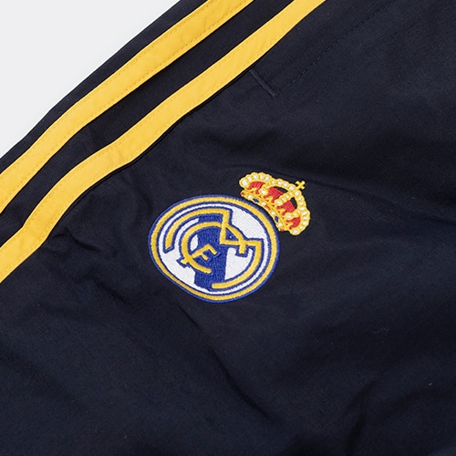 - ラ・リーガ(スペイン)、レアル・マドリードのレプリカコレクション。太ももに鎮座する刺しゅうエンブレムと、ふくらはぎで色を切り替えた大胆なデザインが目を釘付けにするトラックパンツ。