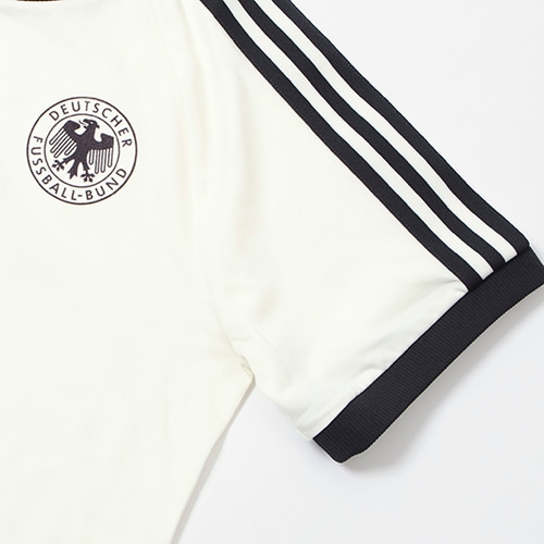 - ドイツ代表チームのアパレルコレクション、adidas ORIGINALS 3ストライプ Tシャツ。スリーストライプスとスエードエンブレムが目を引く、ビンテージ調Tシャツ。