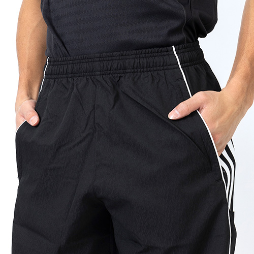 軽量ウーブンファブリックとAEROREADYテクノロジーの組み合わせにより、ドライで快適なはき心地が続く。携帯電話をいつでも手元に持ち歩ける、便利なポケット付き。