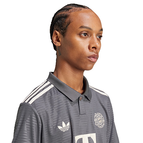 ミュンヘンで最も大きなお祭りのスピリットがジャージーに。バイエルンの祭典を祝って特別にデザインされたユニフォーム。ダイヤモンドのグラフィックをエンボス加工で施し、伝統的なレーダーホーゼン(バイエルン地方の民族衣装の革ショーツ)の刺しゅうからインスピレーションを得たクラブエンブレムをあしらっている。スマートなポロ襟の下に鎮座するトレフォイルが、クラシックなアディダススタイルを引き立てる。快適にお祝いできるように作られた、汗をコントロールするAEROREADY製品。