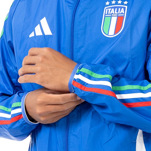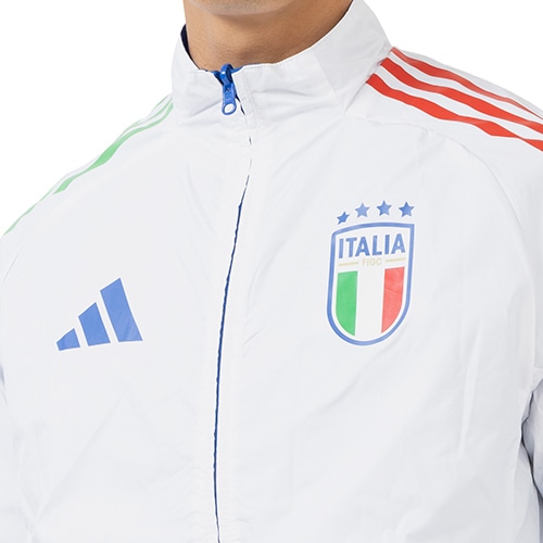 イタリア一筋のファンに贈る、二つの表情を持つリバーシブルジャケット。このジャケット一枚で、ホームでもアウェイでも常にチームとお揃いのルックスでいられます。選手たちが国歌を歌う際に着用し、軽量なのに丈夫なリップストップ生地を使用したモデル。両サイドには、サポーター魂を常に見せつけられるチームエンブレムが輝く。