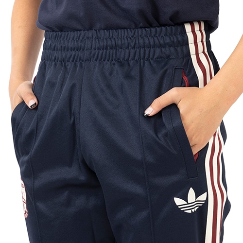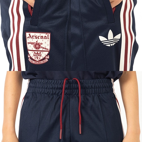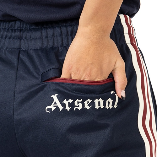 アーセナルの誇りとアディダスヘリテージが見事に融合したデザインが特徴。このトラックパンツは、ビンテージのクラブエンブレムとトレフォイルが目を引く、サッカースタイルを前面に押し出したデザイン。白熱するゲームが繰り広げられるなか、柔らかな感触のピケを使用したスリムフィットの作りが、いつでもサポーターたちに快適な着心地をもたらす。